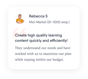 The number one goal of our e-learning authoring tool is to make content creation a piece of cake. That’s why Easygenerator has features that let you drag and drop content, get in-app feedback from co-workers, hand out certificates in the blink of an eye, and so much more. That’s also why our Customer Support team is always happy to help you out via our in-app chat. Or phone or email, if that’s what you prefer.