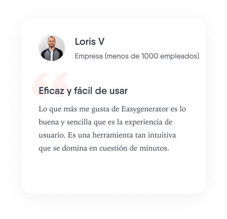 En esencia, Easygenerator es una herramienta de autoría de e-learning diseñada para agilizar el proceso de creación de contenido. Nuestro conversor de PowerPoint es una función que acelera la creación de cursos y te permite ofrecer a los estudiantes un formato de e-learning interactivo.