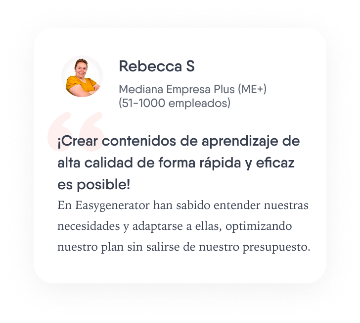 Consulta todas las reseñas en G2.comEl conversor de PowerPoint de Easygenerator se incluye en todas las suscripciones. Para obtener más información sobre los distintos planes disponibles, consulta nuestra sección de precios.