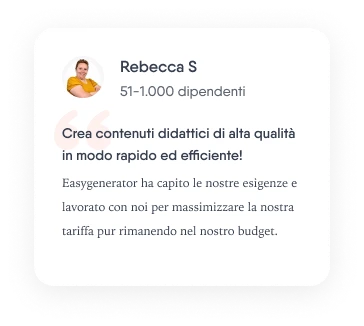 Leggi tutte le recensioni su G2.comIl convertitore PowerPoint di Easygenerator è incluso in tutti i piani di abbonamento. Per saperne di più sulle opzioni disponibili, consulta la pagina delle tariffe.
